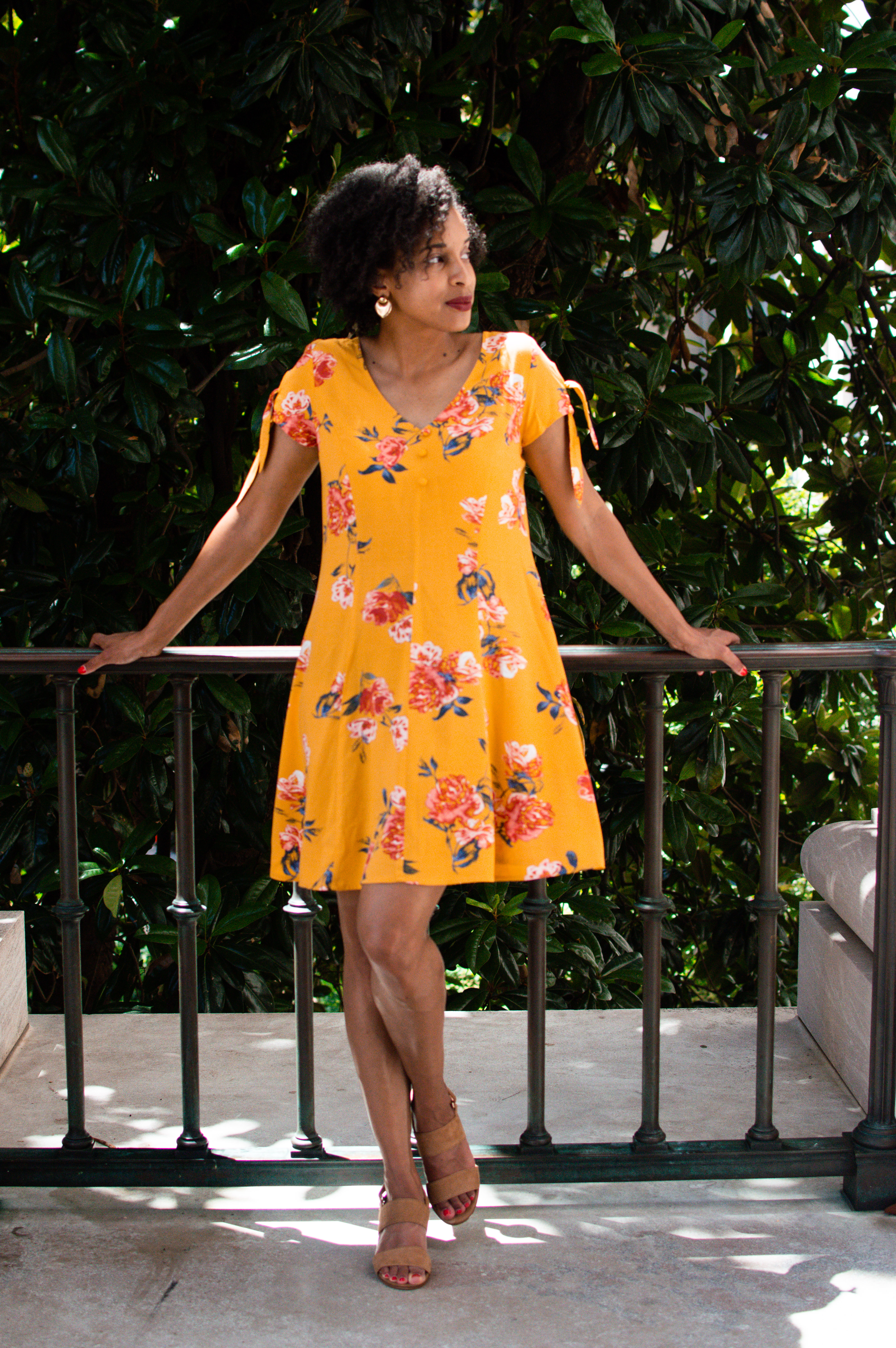 The yellow dress is inspired by the 90s hit show 90210. It’s a simple look that you could pair with sandals, wedges or white sperrys (for my tennis shoes lovers).
