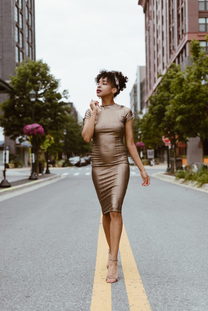 Gold symbolizes extravagance, wealth, riches, and excess. Even if we are house hopping for the rest of the year, I will find a reason to wear this gold fitted midi dress to the next get together.