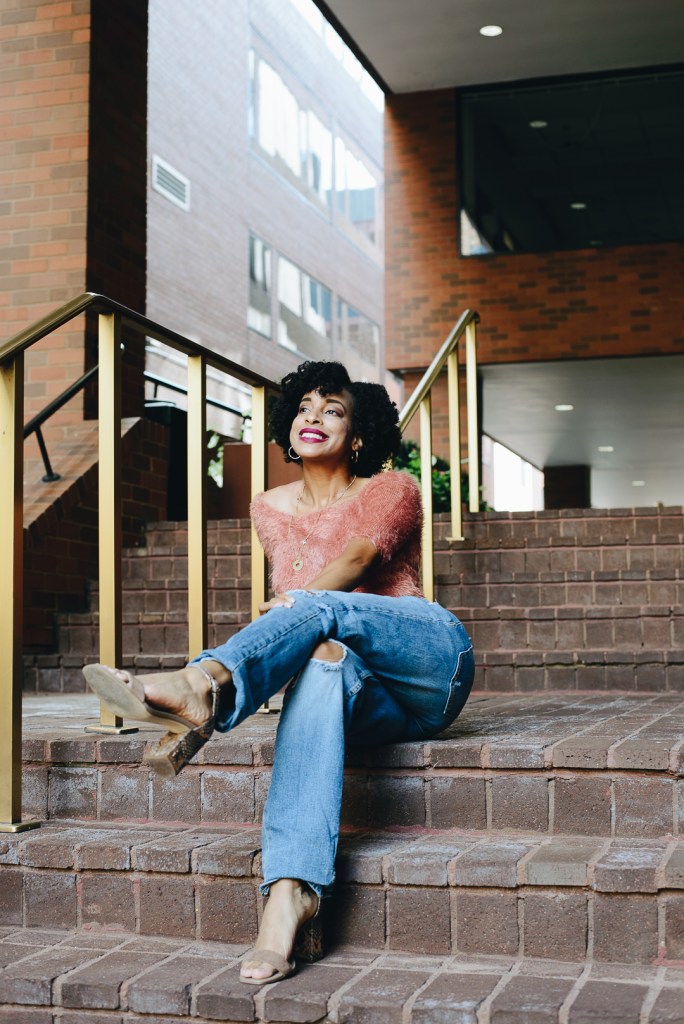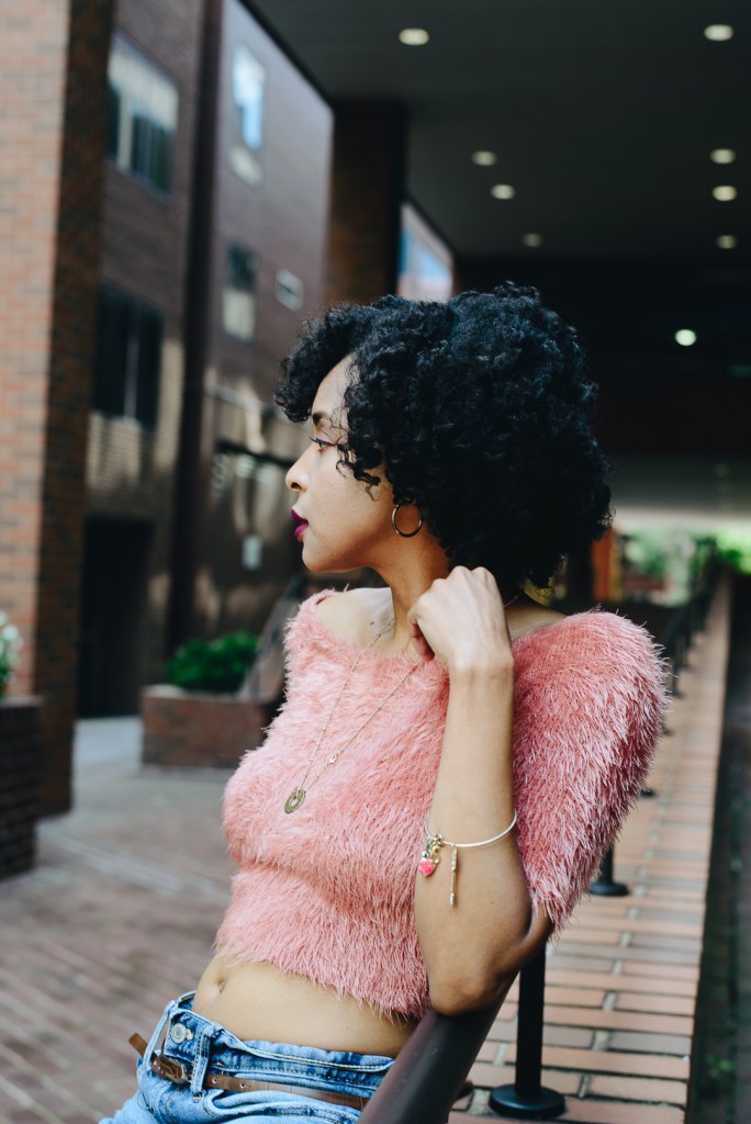 Fall can be unpredictable with the weather fluctuating from 50 to 70 degrees. It’s good to have a sweater for a 72-degree day and a cold evening, which was the case this past weekend at the winery. I wore a pink pullover midriff sweater with distress boyfriend jeans and a neutral color sandal heel. I could have worn this outfit with a neutral color ankle heel boots or white tennis shoes. But I wanted to get as much wear out of my sandals before the weather gets cold.