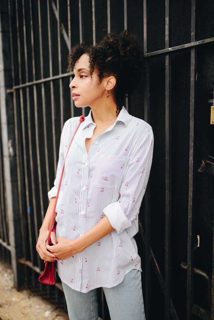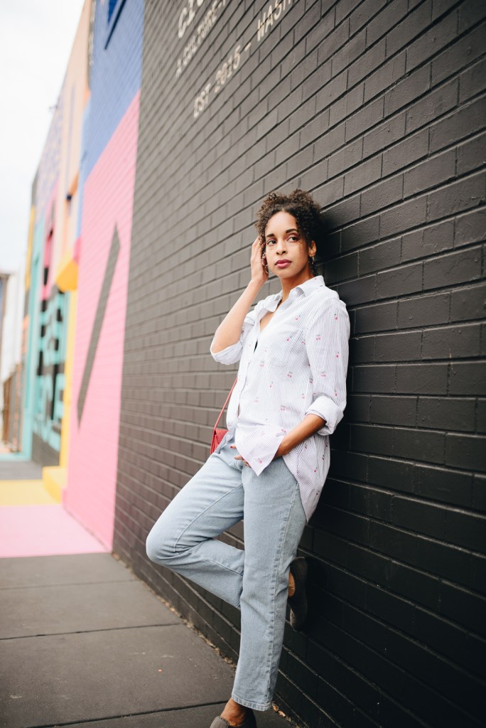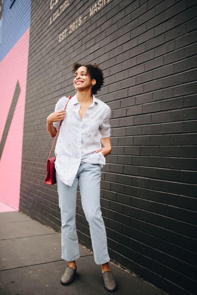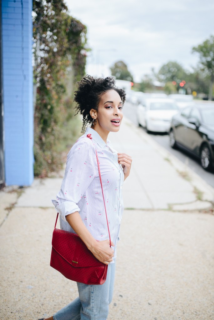 Sometimes in life, you want to chill but look cute doing it. I recently met up with a couple of friends for lunch, and I just wanted to wear something comfortable. So, my look for the day was an Old Navy high-waisted blue denim cut-off ankle jeans with a classic button-down shirt and gray Adrienne Vittadini shoes. Of course, it was my turn to pay; I carried my wallet in a red vintage Liz Claiborne purse. I had a great time catching up with my friends in style.