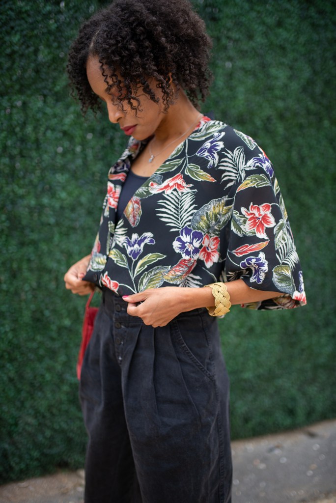 In this post, I will pay homage to the athletic hunk with the killer dimples, AC Slater. He was known for wearing printed shirts tucked into his denim washed jeans and reeboks. I decided to add a feminine twist to this AC Slater inspired look with an oversized floral print blouse, high-waisted black washed denim jeans, and black booties. How did I do with this AC Slater inspired look? Please comment below.