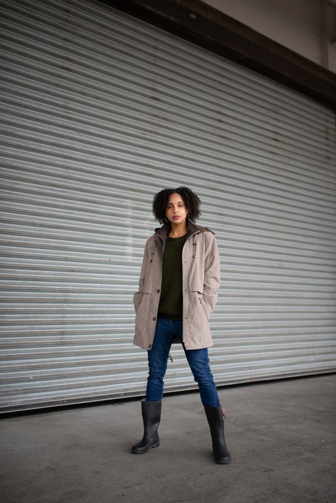 Rainy days in the fall are difficult to dress for; the weather is colder, the wind is harsher, and the rain lasts longer. Finding a good rain jacket during this time of the year can be challenging because if you wear a coat, you’ll be too warm, and wearing a spring rain jacket is not heavy enough to keep you warm. This past Monday, the weather called for rain with a high of 56 and a low of 39; I wore a Liz Claiborne rain jacket, along with a forest green sweater and rain boots to keep me warm and dry.