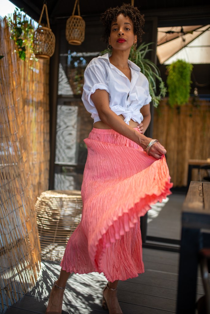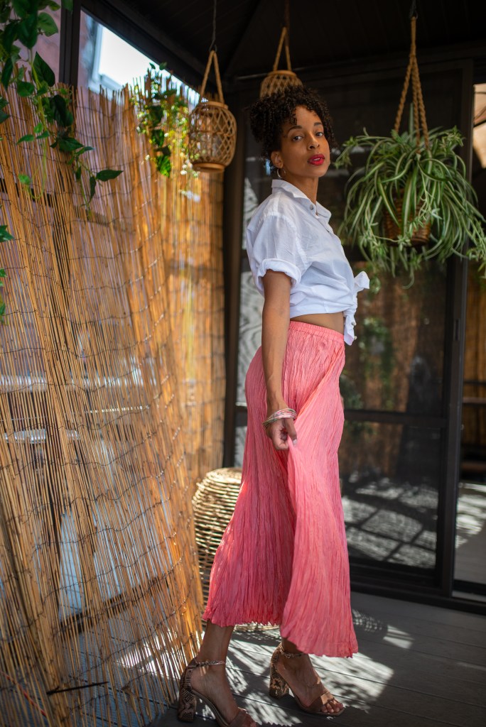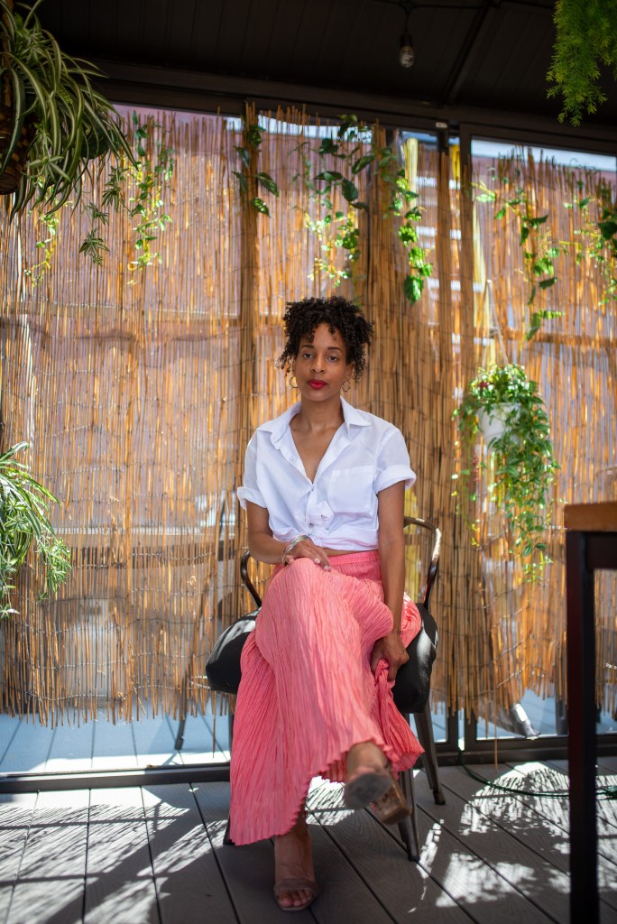 I love getting dressed up to go to new places! This weekend, I ventured out to Maketto to indulge in authentic Cambodian/Taiwanese cuisine. This place is unique; it has a lovely Jungle Bungalow aesthetic outside on the upper level that reminds me of an old Vietnam war movie scene where the soldiers are getting drinks at a local bar. My vintage silk Bedford fair skirt paired with an oversized white shirt that I decided to tie up to add spunk to the outfit perfectly matched the scenery. This fabric was breathable and light; I couldn’t help but doing a couple of twirls in this vintage masterpiece. On a hot, humid day, this outfit was extremely cool and fun to wear.