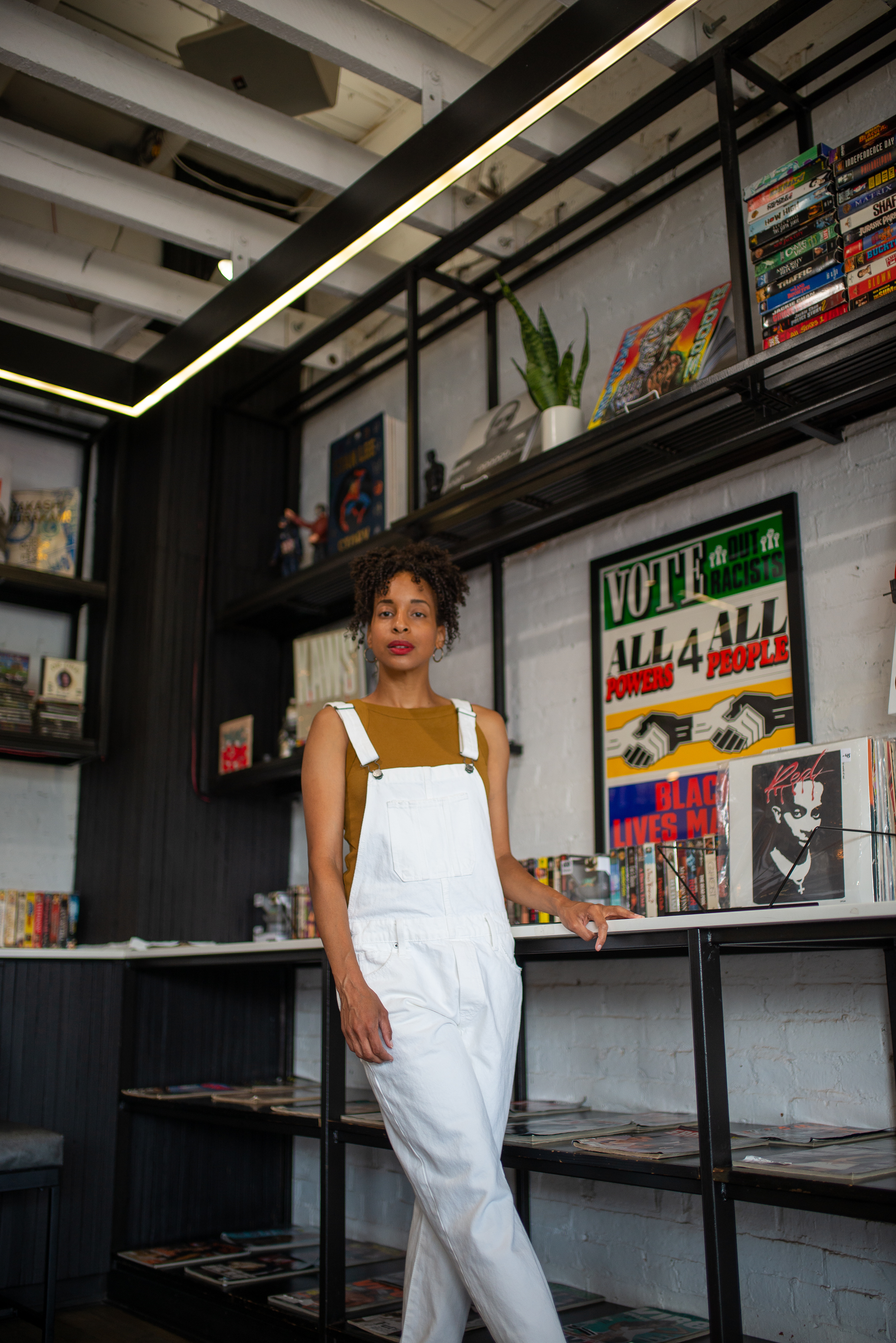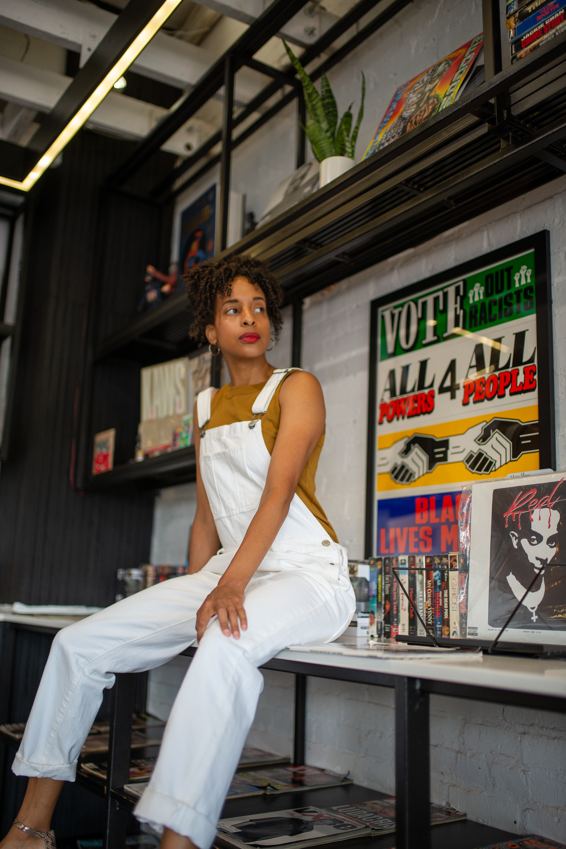 I love creating new looks with Lucky Brand’s white boyfriend overalls. Now that fall is here; I would need to store this piece away until next spring.