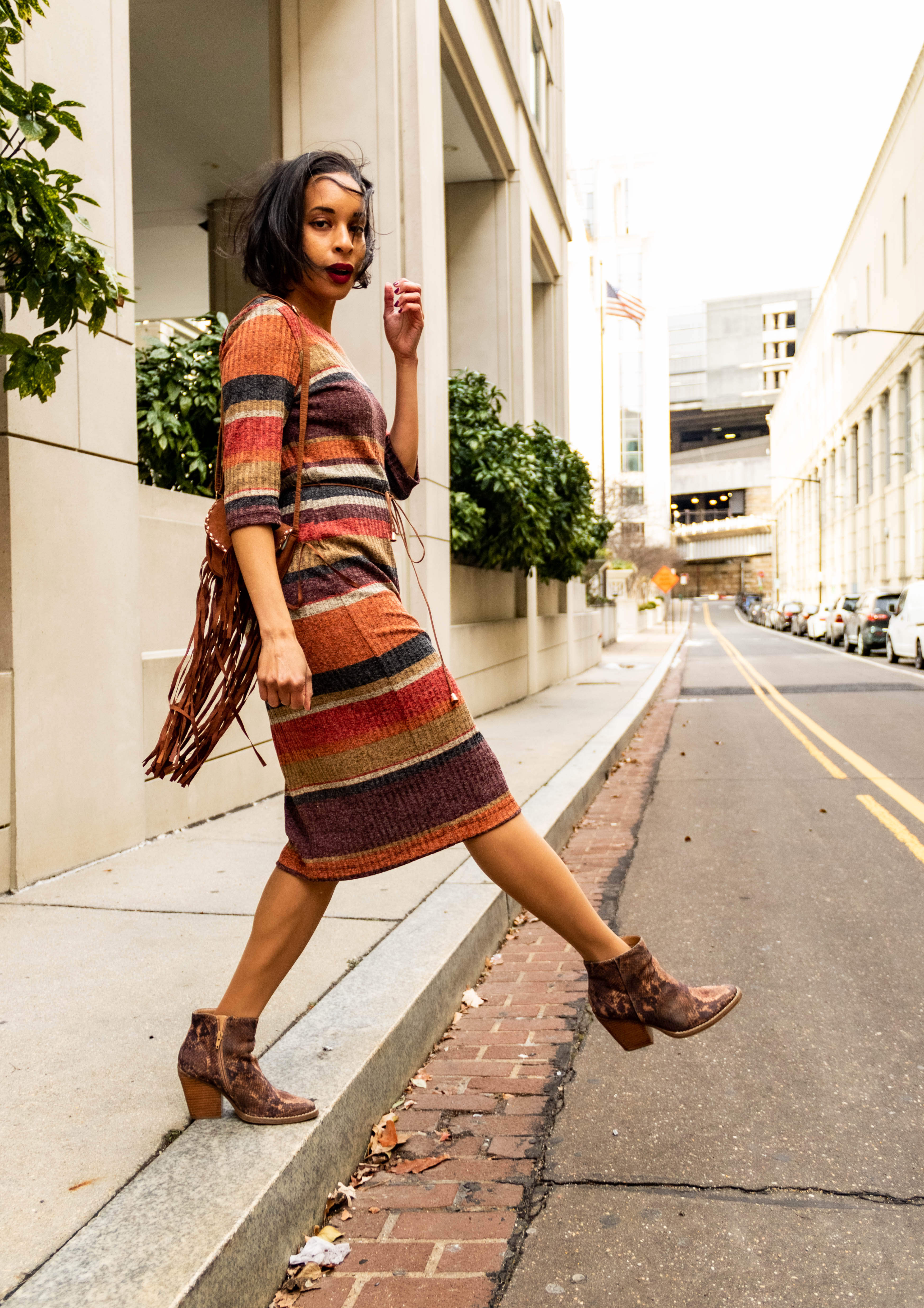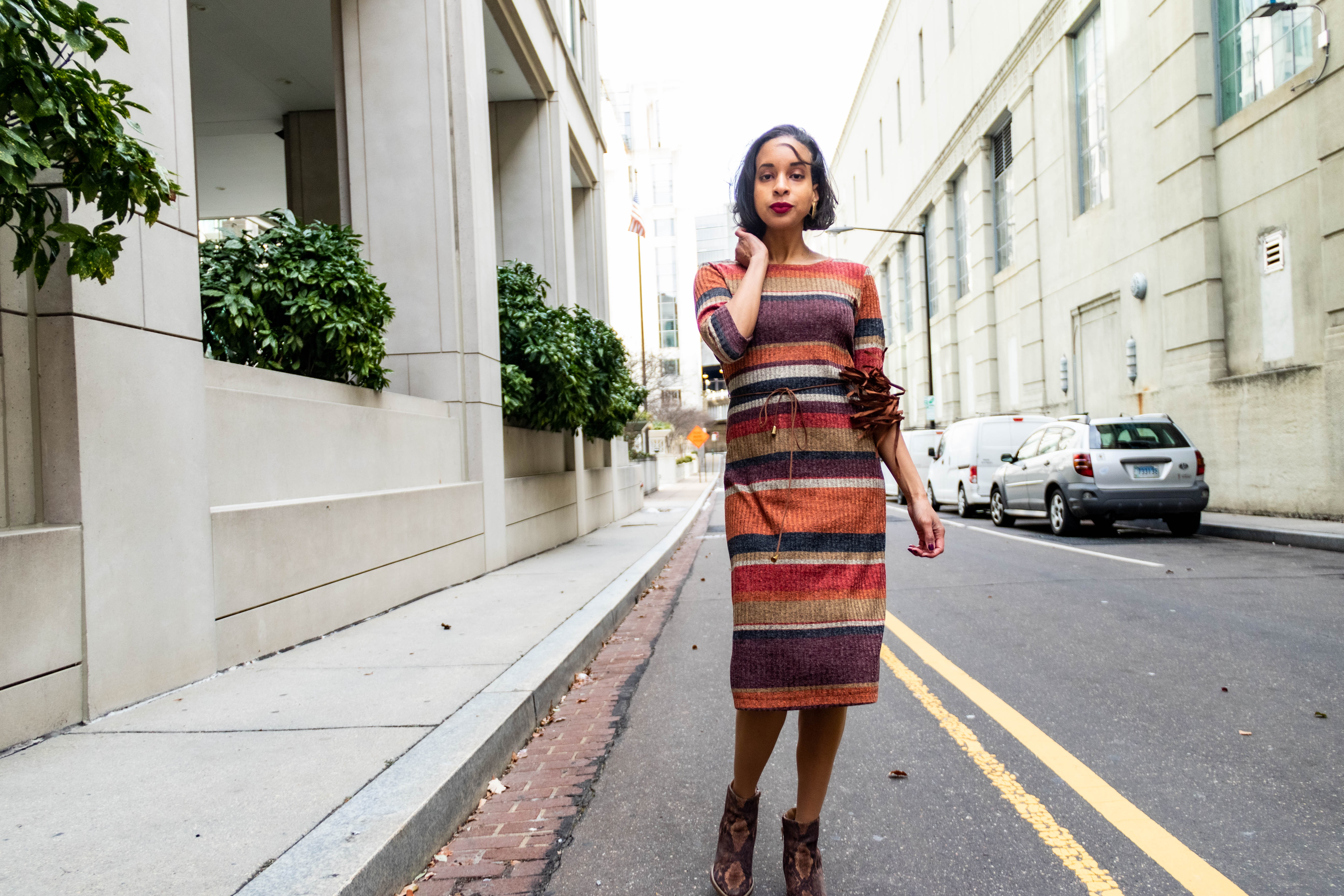 Everyone needs a dress that they can throw on and wear anywhere! This unique All-purpose is something I could wear to church, work, or on a casual day out with friends. Oh, and the purse is adorable, I can’t fit much in it, but it served its purpose and completed the look.