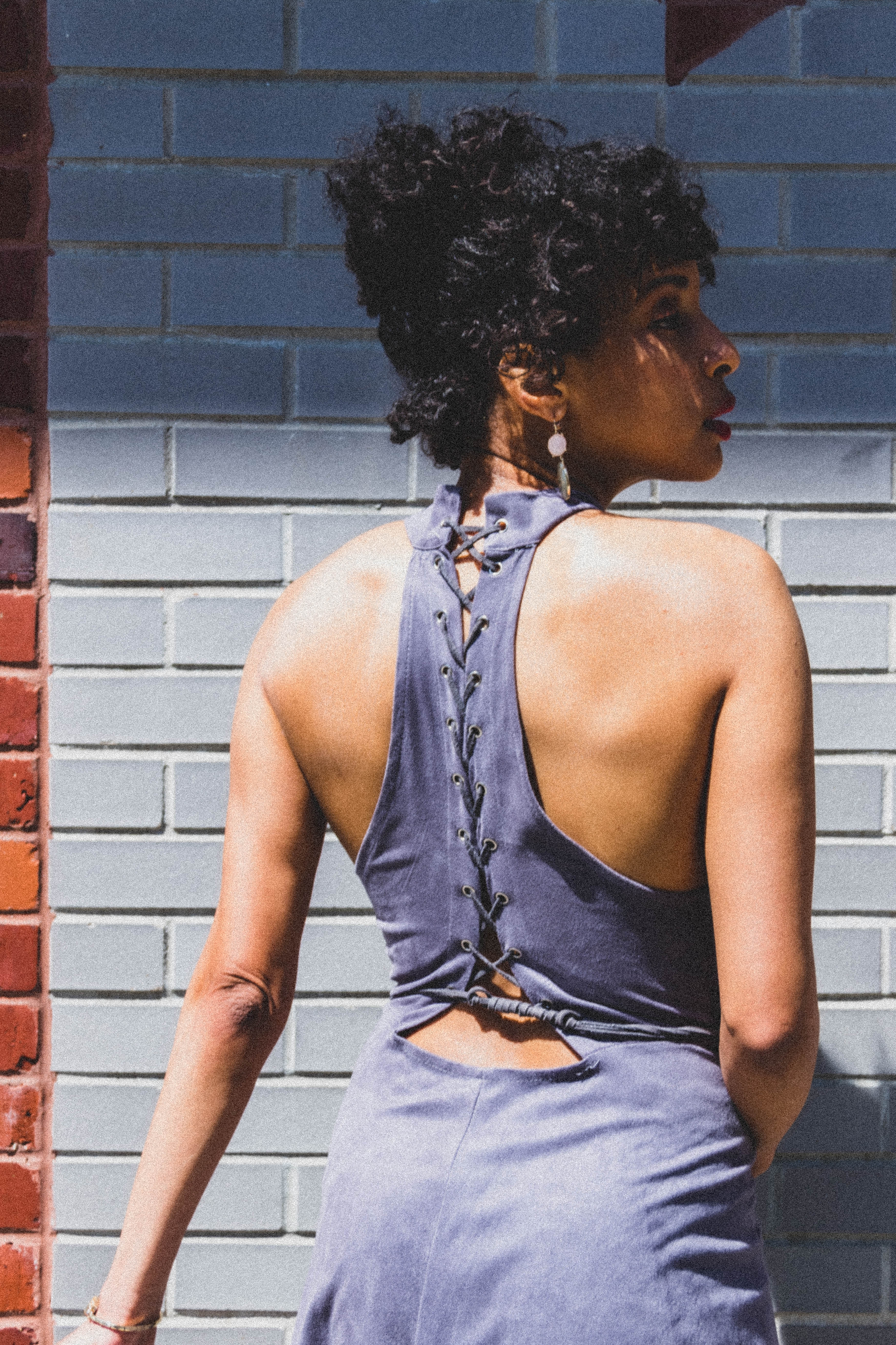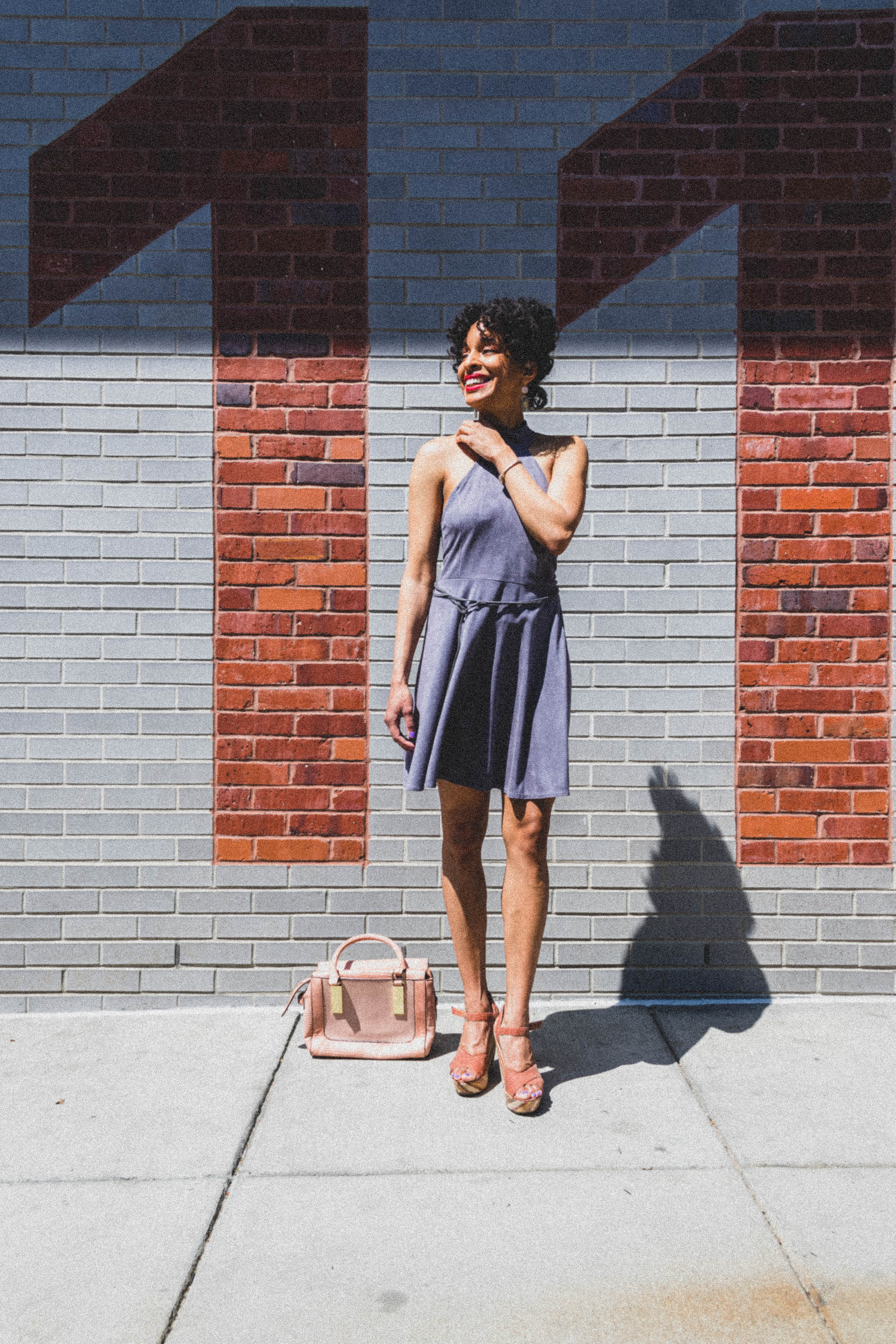 People say that gray is the worst color for the Spring, and they may have a point because Spring usually consists of warm and light colors, but I couldn’t resist this cute halter gray flared dress with unique details on the back. I typically would wear black with this color, but I decided to pair this gray with soft pink accessories and a pinkish color platform shoe to create a Spring look. Of course, when it got a little chilly at night, I wore a lavender trench coat to keep me warm.